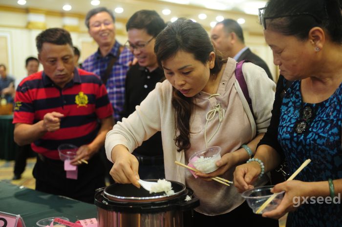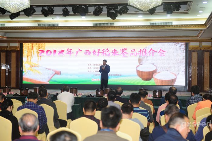 由自治區農業農村廳主辦,自治區種子管理局承辦,廣西種子協會、廣西水稻良種聯合攻關專家委員會協辦的2018年廣西好稻米鑒品推介會于12月6日在南寧市召開,自治區農業農村廳巡視員郭緒全、廣西農科院副院長張述寬以及廳機關有關處室、廳屬有關單位負責人及有關糧食、后勤、餐飲單位負責人,企業代表和市民群眾約100人參加推介會。會議面向社會公布并推介了10個優質稻品種。
