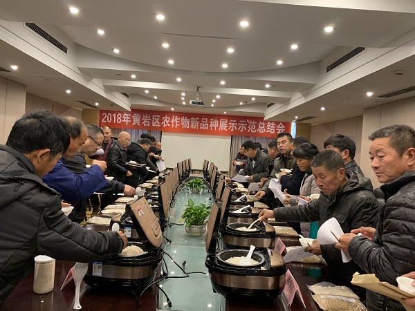 為加快我區農作物新品種示范推廣,總結2018年度農作物新品種展示示范工作,12月17日,黃巖區種子管理站召開了2018年農作物新品種展示示范總結暨“好稻米”食味品鑒會。會議由區種子管理站站長陶永剛主持,全區各鄉鎮、街道辦事處農業服務中心負責種子工作的干部及種糧大戶近50人參加會議。