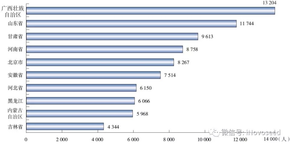 2017 年,全(quan)國各省(sheng)(區、市)共有(you)種子(zi)經營企業職工(gong)人員 128 055 人(ren)(ren)(ren)。在各省(sheng)(sheng)(區、市)種(zhong)業企業的從業人(ren)(ren)(ren)員中,人(ren)(ren)(ren)數(shu)超過萬人(ren)(ren)(ren)的省(sheng)(sheng)份(fen)(fen)有廣西和(he)山東。而人(ren)(ren)(ren)數(shu)不足千人(ren)(ren)(ren)的省(sheng)(sheng)份(fen)(fen)有天津、重(zhong)慶(qing)、海南(nan)、青(qing)海和(he)貴州。