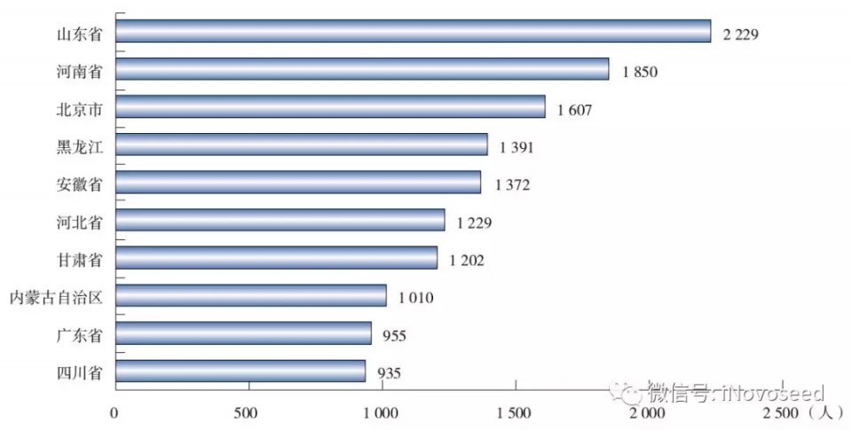 種業(ye)企業(ye)科研人員數(shu)量排名前十省份