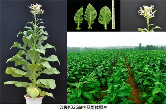 “改良K326”是在煙草基因組計劃重大專項支持下,利用分子標記輔助選擇結合常規育種定向改良主栽品種K326而培育的抗病毒病烤煙新品種。K326是我國第二大主栽烤煙品種,原煙品質優良,是卷煙企業的主選原料,但是易感煙草花葉病毒、黃瓜花葉病毒和馬鈴薯Y病毒。“改良K326”在保持原K326主要性狀不變的前提下,對煙草花葉病毒免疫,抗黃瓜花葉病毒和馬鈴薯Y病毒,實現了兼抗三種病毒病的重大突破。該品種適合于我國K326主栽區種植,能夠有效減少因病毒病發生造成的生產損失,是服務產區、保證煙葉質量安全、促進煙農增收的優良品種。