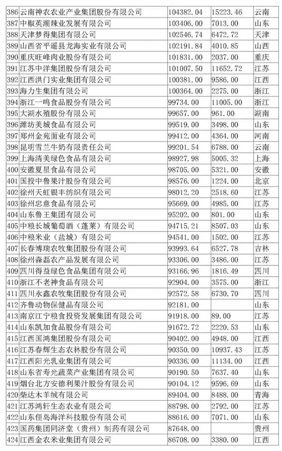本屆農業產業化龍頭企業評價指標為營業收入,即按照2017年企業營收額進行排名,全國31個省(市、區)參加排名。本次入圍門檻為6.7億元,農業產業化龍頭企業2017年營業收入達到100億元以上的企業有62家,入圍企業最多的省是江蘇省。排名前三的企業分別為廈門象嶼股份有限公司、河南萬邦國際農產品物流股份有限公司、新希望集團有限公司。