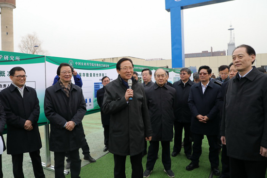 2月26日,農業農村部部長韓長賦、副部長余欣榮到中國農業科學院調研指導國家作物種質庫項目建設情況,實地考察了項目建設現場,詳細了解了項目規模、規劃、進度計劃、重點難點等情況,與建設單位進行了深入交流。農業農村部黨組成員、中國農科院院長唐華俊,院黨組書記張合成陪同調研。