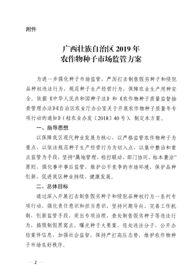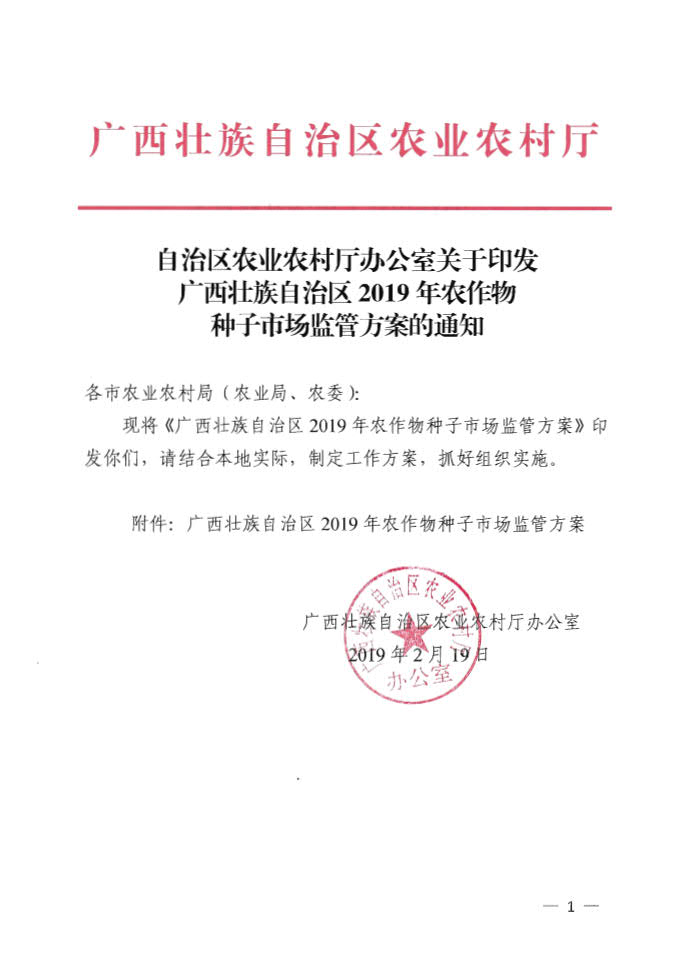 關于印發廣西壯族自治區2019年農作物種子市場監管方案的通知