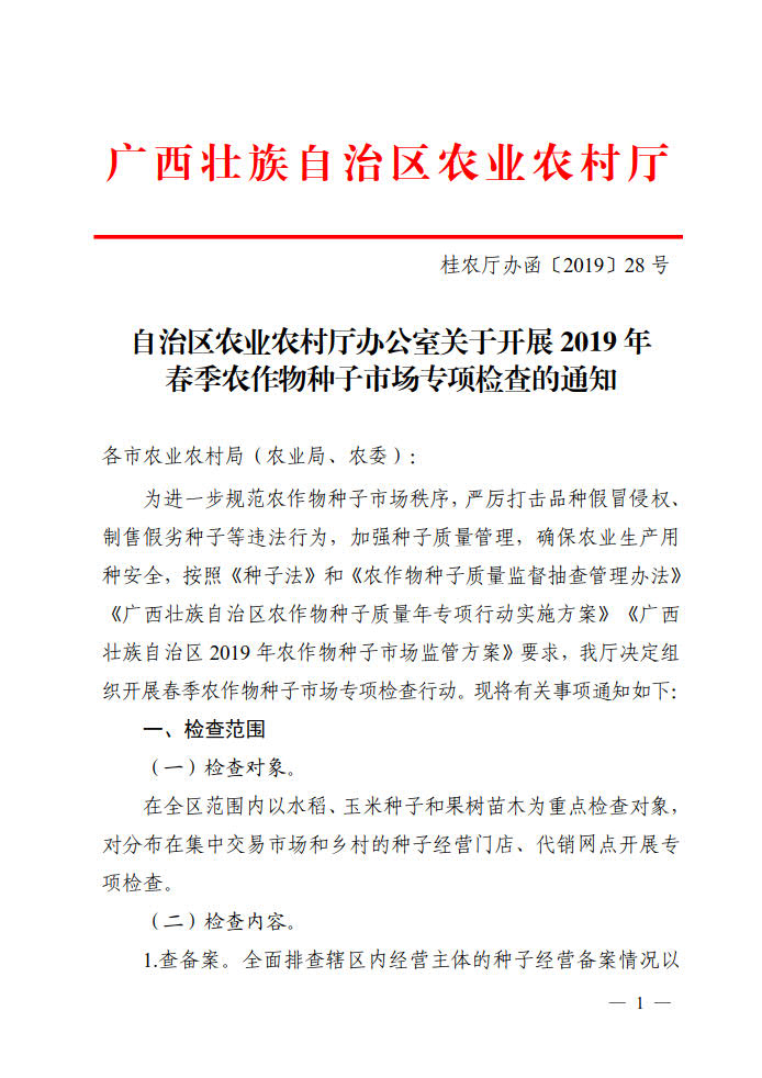 廣西2019年春季農作物種子市場檢查專項行動通知