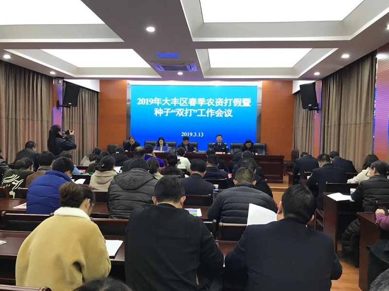 3月13日,鹽城市大豐區農業農村局組織召開2019年度春季農資打假暨種子“雙打”工作會議。大豐區農業綜合執法大隊大隊長王亦農宣讀了《2019年度種子“雙打”暨春季農資打假專項整治行動方案》;區種子管理站站長王新華傳達了相關文件精神并對春季種子市場監管提了要求;各種子經營企業簽訂了《2019年春播供種質量承諾書》;區農業農村局副局長房金鉞要求全體種子管理人員以及農資經營者要強化責任意識,確保農業生產用種安全。大豐區種子生產企業、農資經營大戶代表、各鎮農技站長、信息員以及相關科室人員90余人參加會議。