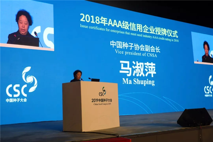 中國種子協會副會長馬淑萍在會上發布中國種子行業信用評價結果,北京金色農華種業科技股份有限公司等26家種企獲得AAA級信用等級(名單見下)。