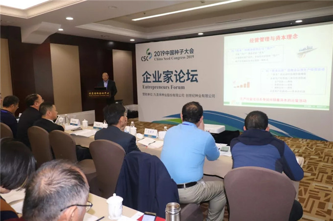 在企業家論壇現場、九圣禾種業有限公司總裁胡保民、隆平高科常務副總裁彭光劍、河南技豐種業集團有限公司董事長李繼軍等企業負責人就種業發展與資本理論、創新發展、職業經理人的激情與夢想等內容,向與會人員進行了分享。