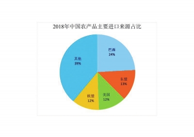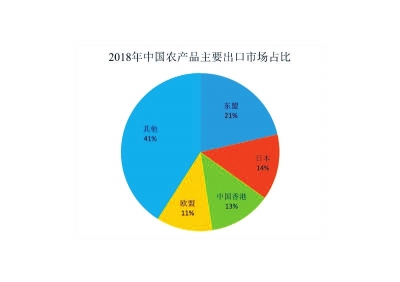 由于大豆、棉花、植物油等主要進口產品的產地分布較為集中,相應地我國農產品進口來源地十分集中。2001年,我國農產品前四大進口來源地分別為美國、東盟、澳大利亞和阿根廷,自這些國家和地區進口的農產品為66.9億美元,占當年進口總額的56.5%。近年來,隨著主要進口產品進口量的快速增長,我國農產品進口集中度有所上升。2018年,我國自前四大進口來源地巴西、東盟、美國和歐盟的農產品進口額合計836.7億美元,占當年農產品進口總額的61%。入世初期,我國農產品出口主要集中在日本、中國香港、韓國等周邊國家和地區以及歐洲、美國等發達國家和地區,其中日本市場占我國農產品出口額的比重在三分之一以上。2001年我國對日本、歐盟、中國香港和韓國這前四大出口市場的出口額為112.8億美元,占當年農產品出口總額的70.2%。近年來,我國與新興市場經濟體和發展中國家不斷加強溝通交流,建立了多個貿易促進平臺,持續推進貿易便利化,促進了相互之間農產品貿易的發展,農產品出口市場多元化程度有所提高,但總體來看出口市場集中度仍然較高。2018年,對東盟、日本、中國香港和歐盟前四大出口市場的農產品出口額為470.6億美元,占當年農產品出口總額的59%。