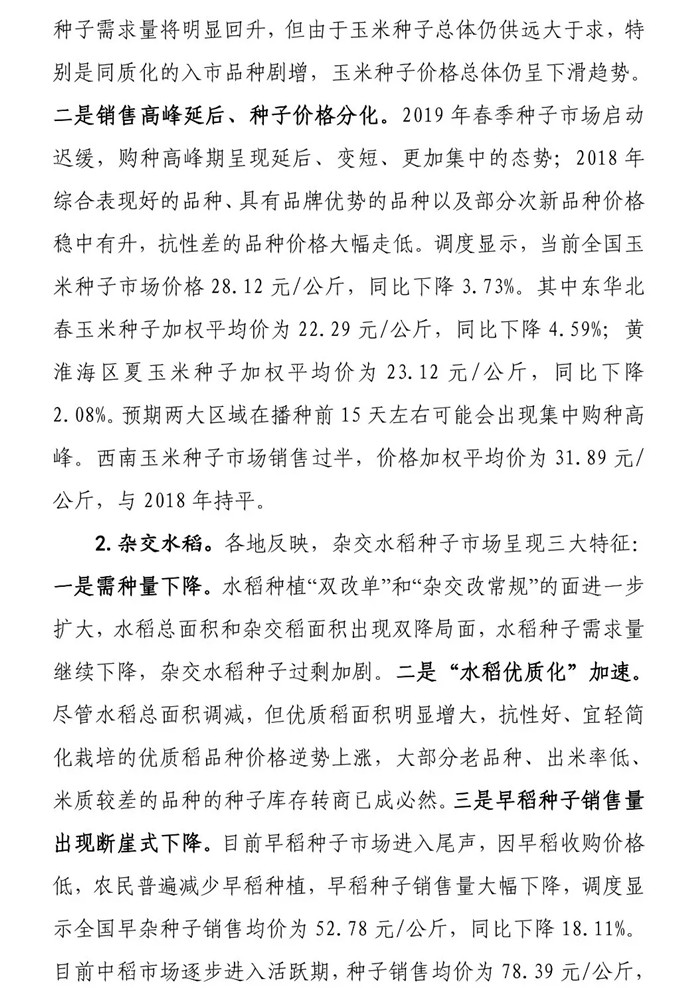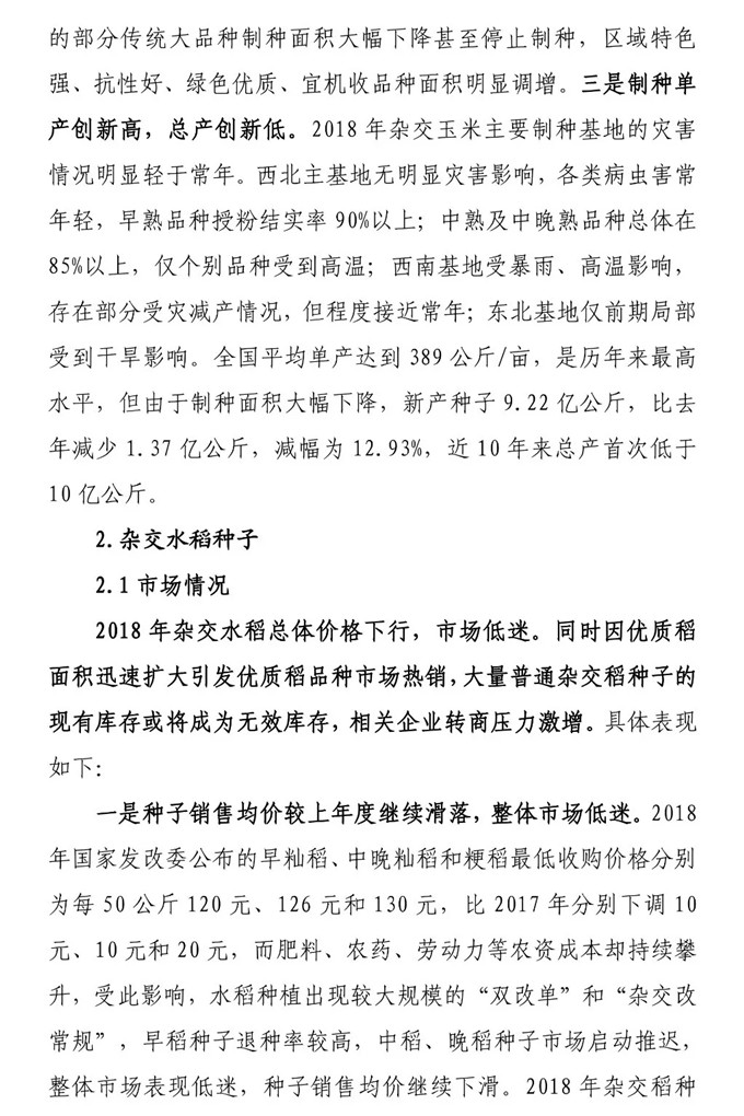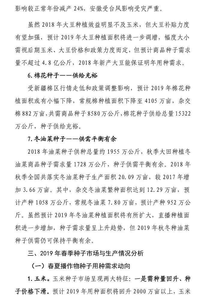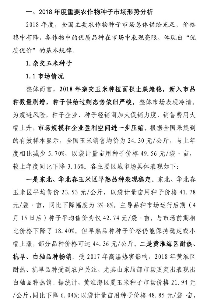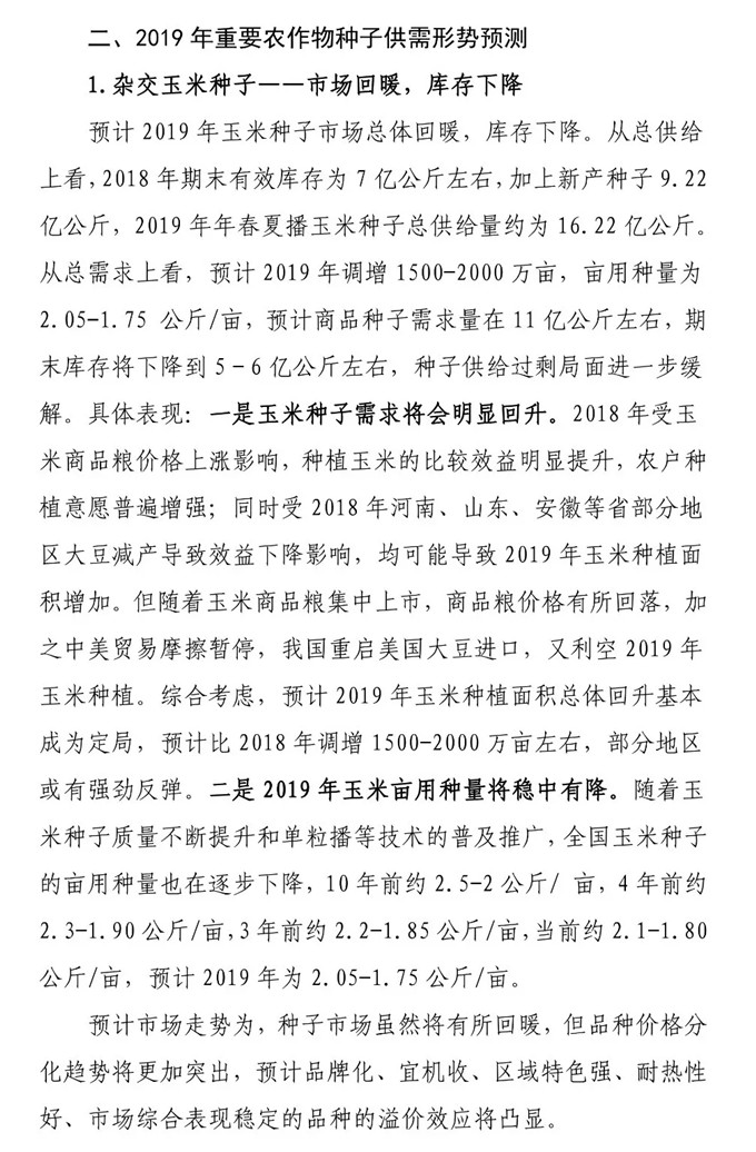 2018-2019年全國重要農作物(wu)種子市場與(yu)供需形勢分析報告