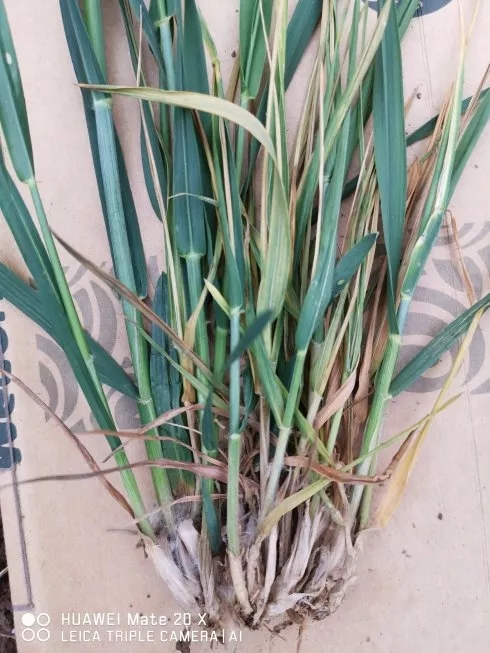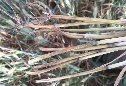 下邊是小麥根腐和莖基腐最近發病的照片,其中有朋友發來的,也有我在曲周小麥育種田和生產田拍攝的。這些圖片中,有根腐和莖基腐同時發生的癥狀,所以鑒別起來不是太準確,但防治應該是差不多同樣的方法。