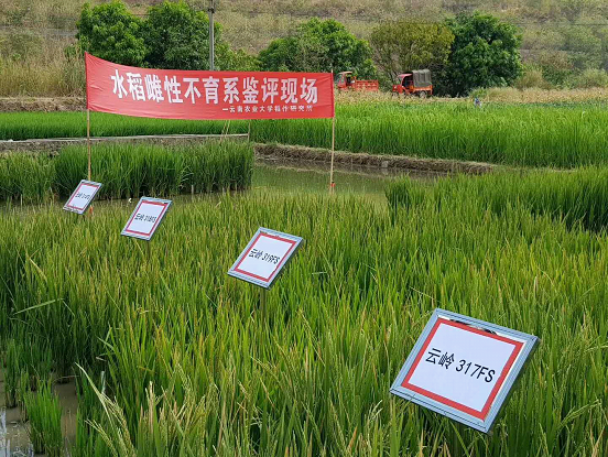 為加快水稻雌性核不育恢復系的開發和利用、推進雜種優勢利用技術體系的創新發展,2019年5月25日,云南省農作物品種審定委員會辦公室組織并邀請湖南省農科院副院長鄧華鳳研究員任組長,農業生物多樣性國家工程研究中心、云南省農科院、云南省種子管理站等省內外水稻專家組成鑒定組,對云南農業大學稻作研究所創制的四個水稻雌性核不育恢復系(云嶺314FS,云嶺317FS,云嶺318FS,云嶺319FS)進行現場鑒定。