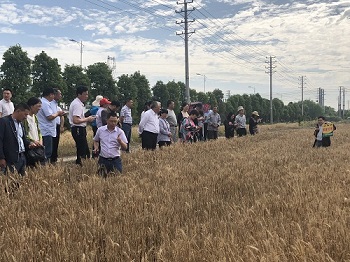 5月29日,如東縣種子管理站組織轄區內各鎮(區)農業服務中心(農村工作局)分管負責人、種子員、種糧大戶、種子經營人員代表、縣有關種子企業負責人及縣農業農村局相關專業人員,觀摩小麥新品種示范基地了如東縣小麥綜合性測試基地,聽取了負責人對各品種的介紹。