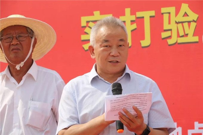 農業農村部小麥專家組顧問、河南農業大學郭天財教授擔任專家組組長。國家品種審定委員會小麥專業委員會主任委員、河南省種子管理站副站長周繼澤研究員,全國農技推廣服務中心郭利磊農藝師、河南省農科院小麥所趙虹研究員、商丘市農科院胡新研究員、商丘市種子管理站站長趙志宏高級農藝師、永城市種子管理站站長梁洪杰高級農藝師等專家組成員和監督組成員出席測產會。全國農技推廣服務中心品種區試處處長張毅出席測產會并講話!
