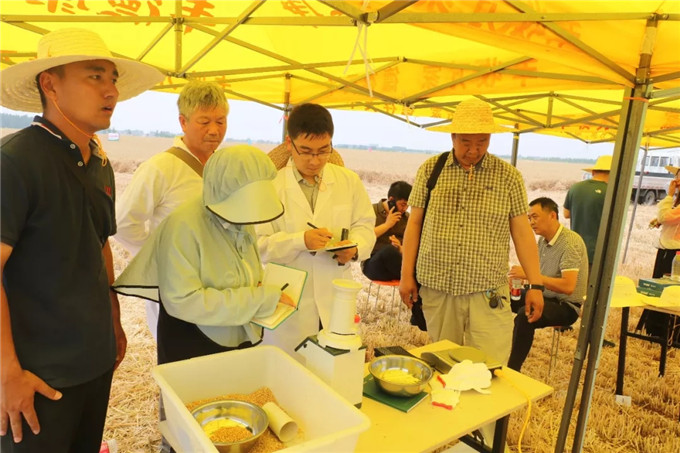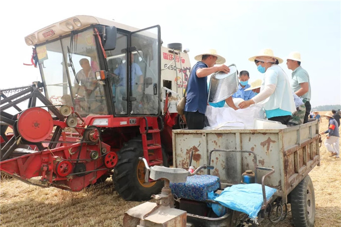 6月5日,中原大地,驕陽似火。在永城市侯嶺鄉張井村一塊麥田里,2019年強筋優質小麥豐德存麥5號實打驗收會正在這里舉行。