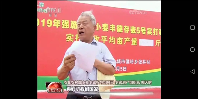 6月9日,CCTV-1《晚間新聞》以《全國麥收進度多半,優質小麥創高產》為題,報道了我國當前的麥收進度,并對小麥大省河南的優質強筋小麥的搶眼表現進行了重點報道。優質強筋小麥“豐德存麥5號”,平均畝產778.9公斤,再創大面積創高產新記錄,且品質達到國家一級優質強筋標準,解決了高產不優質優質不高產的矛盾。