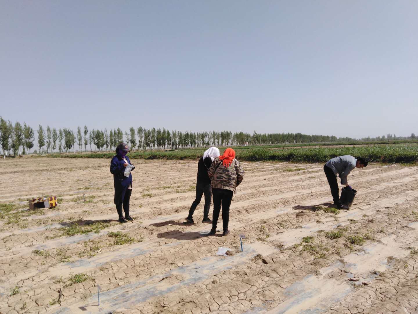 6月5日-6月6日巴彥淖爾市種子管理站品種管理科全體科技人員到杭錦后旗頭道橋鎮聯增村對食用向日葵登記品種驗證試驗的40個品種進行播種。播種根據最適播種密度制定田間種植方案,采用劃線等行距人工點播的方式進行播種。