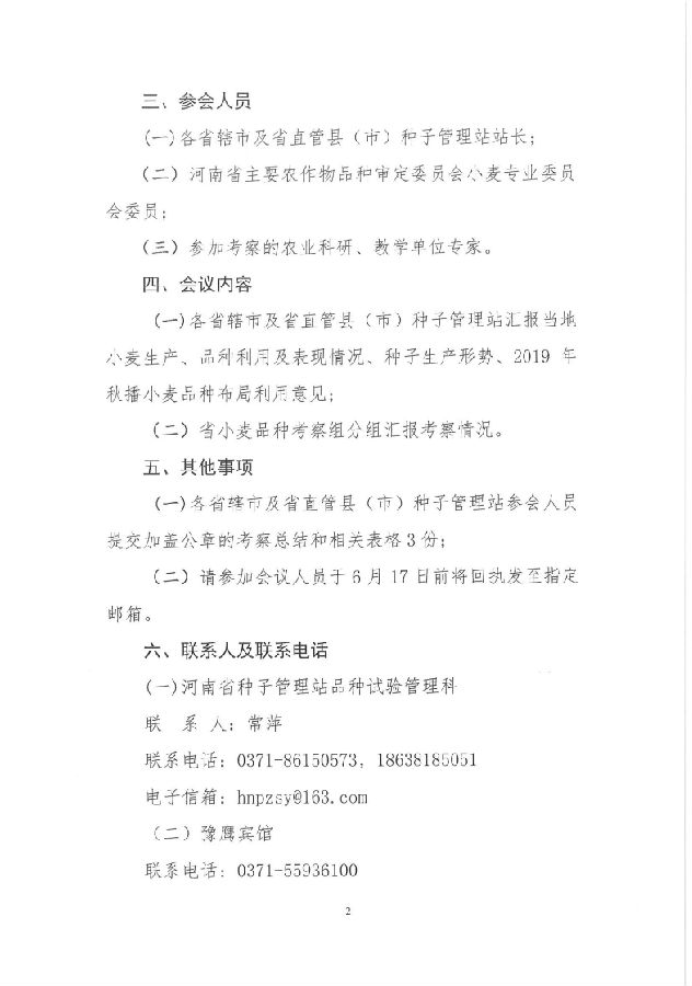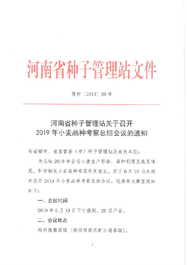河南省種子管理站關于召開2019年小麥品種考察總結會議的通知