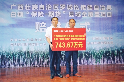 在羅城,和廖韋東一樣拿到保險理賠款的蔗農共有6164戶,總賠付額達743.67萬元,覆蓋甘蔗種植面積13萬余畝,對應白糖現貨量約6萬噸。這一切得益于鄭州商品交易所第一個縣域全覆蓋項目——白糖“保險+期貨”縣域全覆蓋試點項目。