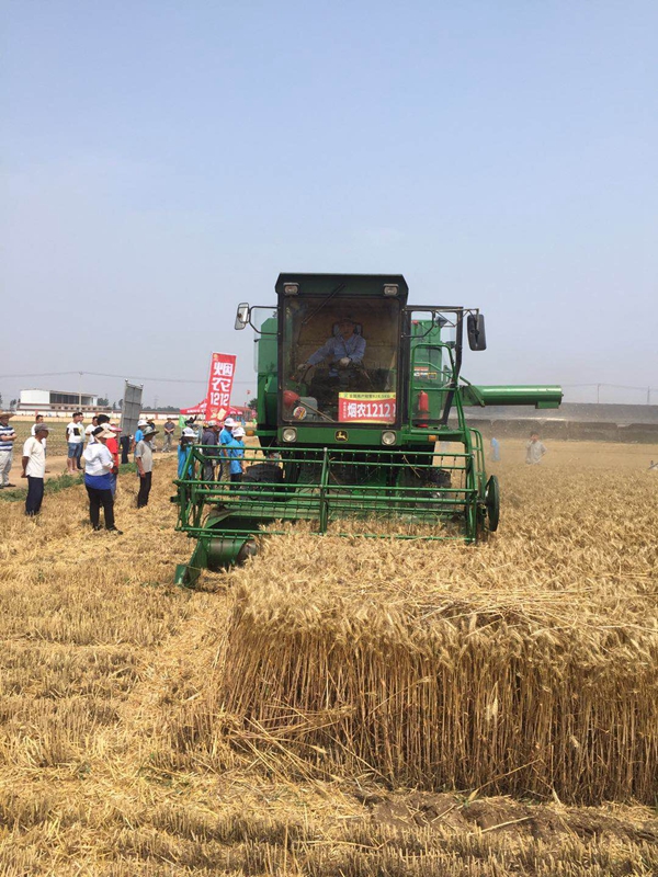 煙農1212小麥新品種選育者姜鴻明介紹,煙農1212小麥新品種具有“一高五抗”即高產和抗寒、抗病、抗倒伏、抗干熱風、抗衰老等突出優點,生育后期仍能保持較大的綠葉面積,灌漿持續期長,灌漿強度大,落黃好,活棵成熟,“源足、庫大”粒重高,具有良好的產量潛力。2015年6月22日,山東省農業廳組織有關專家對煙農1212的小麥高產創建攻關田進行實收測產。實收3.05畝,平均畝產達到了809.13公斤,創2015年山東省小麥最高紀錄。2016年6月20日,受農業部種植業管理司委托,全國農業技術推廣服務中心組織有關小麥專家,對 煙農1212的20畝高產攻關田進行實收驗測產,實收面積3.53畝,畝產828.5公斤,創全國冬小麥單產最高紀錄。2017年,山東省農業廳組成的專家實收驗收組對龍口糧食綠色高質高效創建小麥田煙農1212實收結果畝產801.3公斤。今年,山東省農業農村廳組成的專家實收驗收組對濟寧市兗州區史家王子村糧食綠色高質高效創建小麥田3.1畝煙農1212實收,畝產803公斤。煙農1212連續多年、多地單產在800公斤以上,充分驗證了煙農1212的高產能力,而且今年創造全國旱地小麥高產紀錄,進一步證明煙農1212同時兼具節水能力。