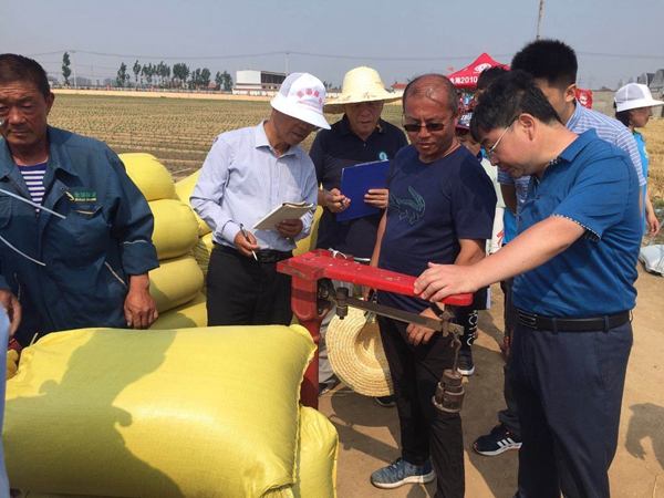據悉,此次實收驗測產專家組成員包括揚州大學研究員郭文善、中國農科院作物所研究員肖世和、中國農業大學研究員王志敏, 河南省農業技術推廣總站研究員毛鳳梧、山東省農科院作物所研究員王法宏、全國農技推廣中心研究員湯松、山東農技總站研究員鞠正春。實收中,專家們實地查看了小麥田間長勢后,按照農業農村部有關要求,對實收麥田經過丈量、機械收獲脫粒、稱重、水分測定、取樣測定雜質率等環節。