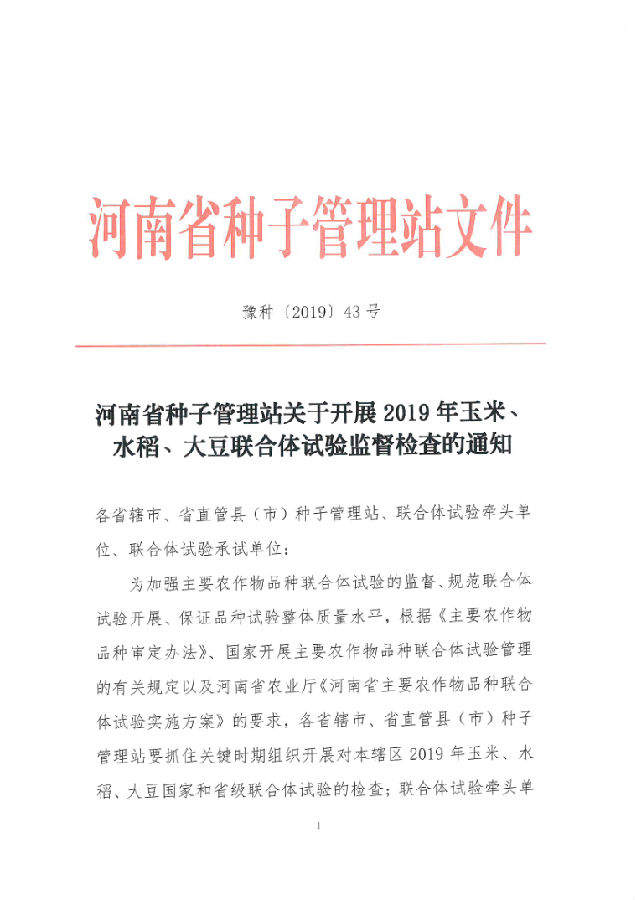 河南開展2019玉米、水稻、大豆聯合體試驗監督檢查通知