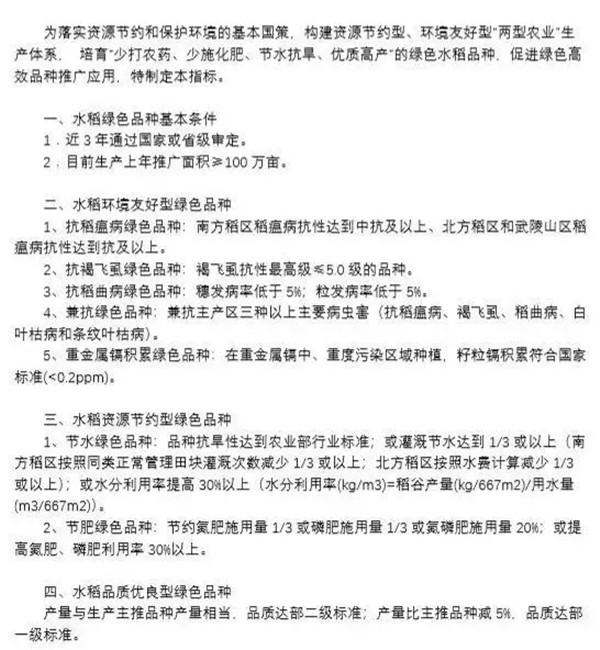 19年5月,農業農村部種業管理司下發水稻等四大作物綠色品種指標體系,旨在四大主糧作物品種審定制度的基礎上,每年將根據綠色品種指標體系,遴選出一批綠色優質品種,推動品種更新換代。