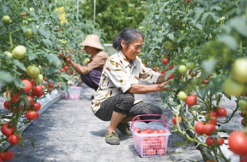 仲夏時節,重慶忠縣馬灌鎮果園村的10余畝利用無土栽培技術種植的西紅柿陸續成熟。近年來,果園村引進無土栽培、營養液調配、環境監測控制等技術,發展高品、高產、安全的特色高效農業,有效提升了農業發展質量和效益,助推鄉村振興。圖為7月2日,果園村村民在無土栽培西紅柿大棚內采摘。