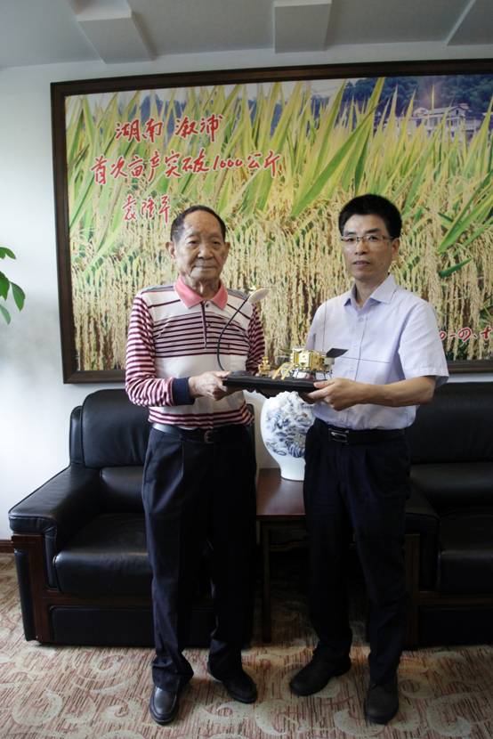 近日,航天生物公司胡肖傳總經理一行前往國家雜交水稻工程技術研究中心,拜訪袁隆平院士,實地調研我國在兩系雜交水稻、超級雜交水稻等領域的最新成果。在與袁院士會見期間,公司介紹了航天搭載與空間生物實驗服務業務的發展情況,并向袁院士贈送了航天紀念模型。