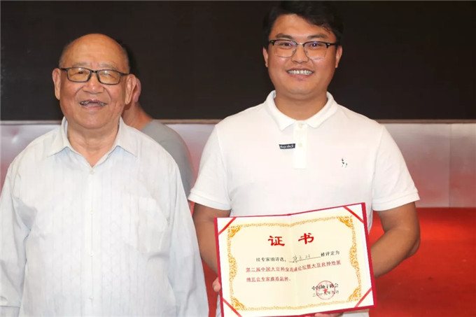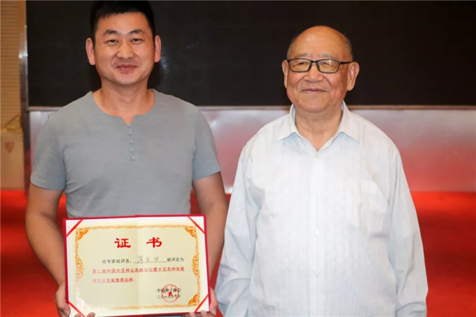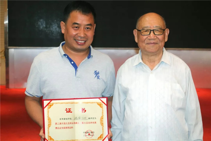 品種展示期間,論壇組委會多次組織專家,針對參展品種的抗性、糧質、產量和綜合指標等進行評價,經篩選出35個種植優秀品種,被評為“第二屆中國大豆種業高峰論壇暨大豆良種地展博覽會專家推薦品種”。蓋鈞鎰院士、鄧光聯副會長等作為頒獎嘉賓為這些品種所在單位頒發了獎牌和證書。