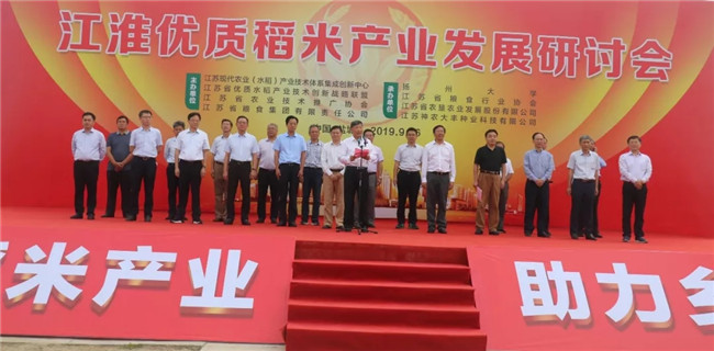 為了推進江淮地區優質稻米產業發展,深化農業供給側結構性改革,展示優質稻米產業的研發成果,助力鄉村振興,獻禮建國七十周年,9月26日,由江蘇現代農業(水稻)產業技術體系集成創新中心、江蘇省優質水稻產業技術創新戰略聯盟、江蘇省農業技術推廣協會、江蘇省糧食集團有限責任公司主辦,揚州大學、江蘇省糧食行業協會、江蘇省農墾農業發展股份有限公司、江蘇神農大豐種業科技有限公司承辦的江淮優質稻米產業發展研討會,在江蘇省鹽城市鹽都區郭猛鎮舉行。