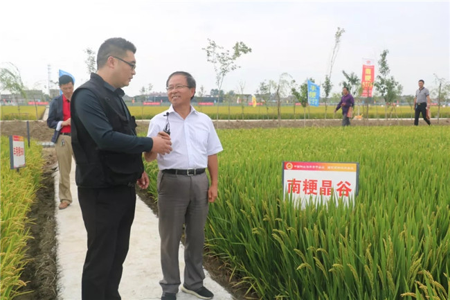 江蘇省農科院研究員王才林在觀摩現場介紹了南粳5718和南粳晶谷的特征特性和主要特點。