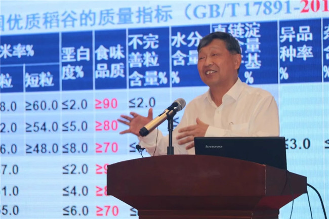 在研討交流環節,張洪程院士以《發展中高端優質稻米,推進品牌產業建設》為題,向與會代表分享了中高端優質稻米的內涵與標準(綠色、安全、好看、好吃)、中高端優質稻米綠色優質栽培技術以及推進與發展中高端優質稻米產業的戰略措施建議等三方面的精彩內容。他指出,以科技創新與綠色生產方式發展中高端優質稻米是我國水稻產業現代化建設的基本方向,也是稻區產業興旺、鄉村振興的重要內容,期待廣大科技工作者、稻米企業家與稻農們,不斷加強創新創造,共同建設我國稻米高質量發展的美好明天。