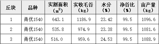 專家組現場隨機抽取了3丘示范田,采用聯合收割機實割,按農業農村部超級稻測產驗收辦法測產。測產結果如下: