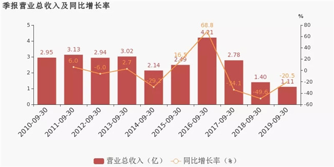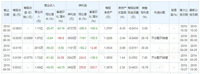 神農科技近日披露三季報,公司2019年前三季度實現營業總收入1.1億,同比下降20.5%,降幅較去年同期收窄;歸屬上市公司股東的凈利潤-8737.2萬,上年同期為3401.7萬元,未能維持盈利狀態。