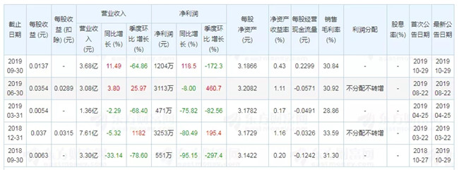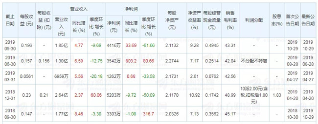 萬向德農近日披露三季報,公司2019年前三季度實現營業總收入1.9億,同比增長4.8%;歸屬上市公司股東的凈利潤4416萬,同比增長33.7%;每股收益為0.2元。