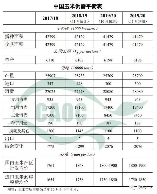 本月估計,2018/19年度,中國玉米產量2.57億噸,比上年度減0.7%。玉米消費量2.75億噸,比上年度增1.7%。玉米進口量448萬噸,比上年度增101萬噸,增幅29.1%。由于當年產不足需,國內玉米產需缺口為1299萬噸,比上年度擴大526萬噸。