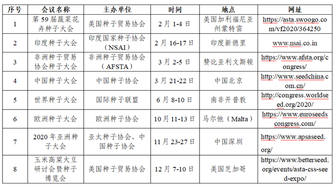 7、由亞太種子協會(APSA)與中國種子協會主辦的2020年亞洲種子大會(ASC)將于11月23日至27日在中國深圳舉辦。亞洲種子大會是全球最大最重要的種業活動之一,為來自全球各地的種業企業和機構提供一個技術研討、種苗展示及商務洽談的平臺。每年11月舉辦一次,大約有來自60個國家和地區的1000-1500名代表參會。