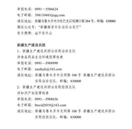 根據公安部要求,各省級公安機關也要公布本省(自治區、直轄市)范圍內各市、縣級公安機關監督舉報方式。各市、縣級公安機關110報警電(dian)話同步接受(shou)舉(ju)報。所有(you)舉(ju)報平臺將(jiang)有(you)專(zhuan)人(ren)負責,對(dui)群眾舉(ju)報的每一(yi)條線(xian)索(suo)公安機關都將(jiang)認真(zhen)核查,一(yi)經(jing)查實將(jiang)依(yi)法予以(yi)嚴厲打擊。對(dui)舉(ju)報有(you)功人(ren)員,將(jiang)予以(yi)獎勵。