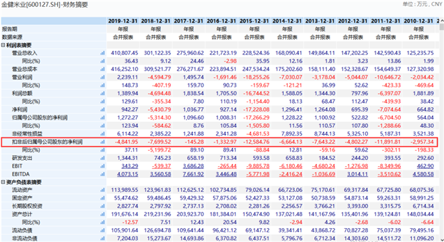 當年,金健米業扣非后凈利虧損4841.95萬元。至此,上市公司扣非后凈利已經連虧13年。