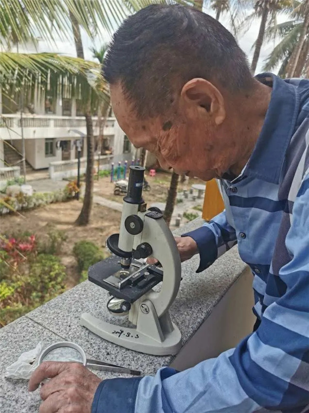 袁隆平在觀察稻種。湖南雜交水稻研究中心供圖