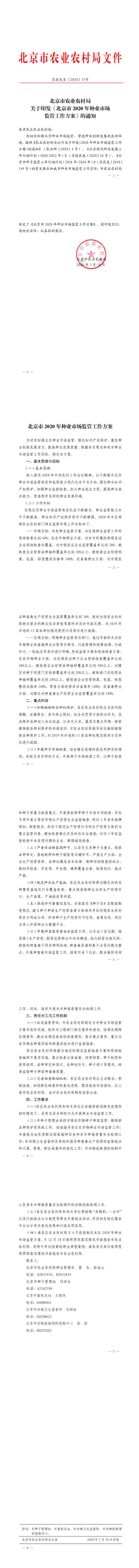 北京市農業農村局關于印發《北京市2020年種業市場監管工作方案》的通知