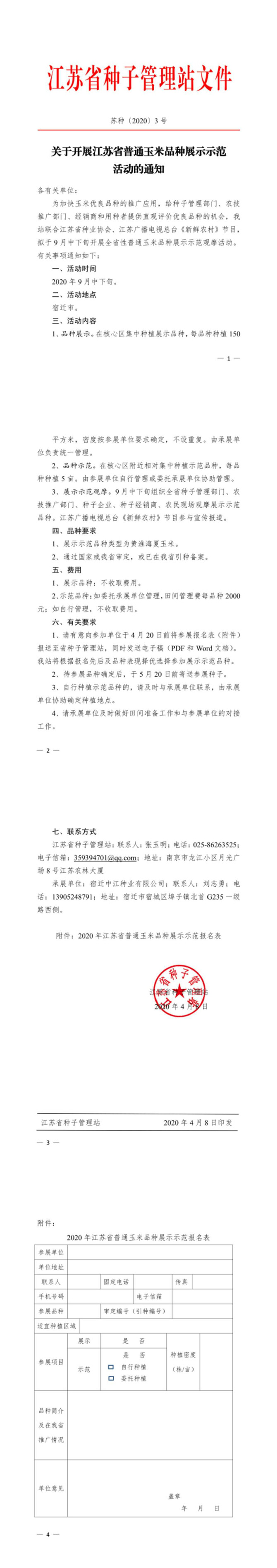 關于開展江蘇省普通玉米品種展示示范活動的通知