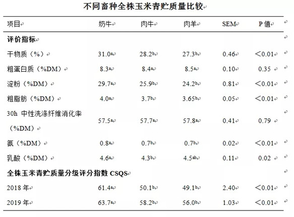 據了解,以全株玉米青貯4個營養指標(粗蛋白含量、淀粉含量、粗脂肪含量、30小時中性洗滌纖維消化率)和2個發酵指標(氨和乳酸含量)為核心構建的全株玉米青貯質量分級評分指數(CSQS)能全面反映全株玉米青貯的營養和發酵品質。從CSQS評價結果看,2019年我國糧改飼試點地區全株玉米青貯質量85%以上達到良好水平,同比提高6.1%,基本與美國平均水平相當。但是在不同地域、不同畜種、不同養殖規模全株玉米青貯質量之間仍存在一定差距,黃淮海地區全株玉米青貯質量評分比華南和西南地區分別高18.6%和20.6%,奶牛養殖企業全株玉米青貯質量評分比肉牛和肉羊養殖企業分別高9.5%和13.8%。