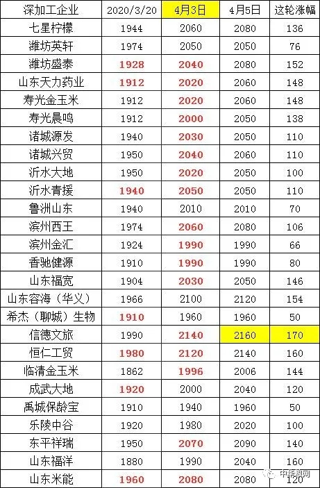 一日兩漲三漲更不在話下,4月5日玉米最高上漲到2160元/噸,本輪累計漲幅最高達到170元/噸!