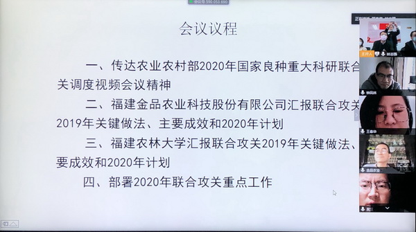 面對疫情,為了確保聯合攻關任務順利完成,4月9日,福建省種子總站組織召開了國家青梗菜良種重大科研聯合攻關2020年工作推進視頻會。本次視頻會議設立1個主會場和4個分會場,福建省種子總站朱鴻站長、秘書長單位福建金品農業科技股份有限公司林曉董事長、首席專家福建農林大學吳雙教授,以及來自攻關聯合體成員單位的部分代表共計10多人參加了會議。朱鴻站長主持會議并發表講話。