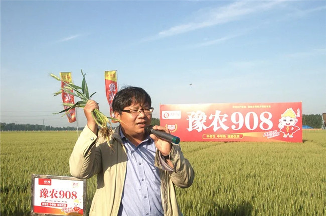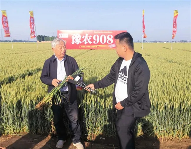 農業農村部小麥專家指導組顧問、河南省小麥專家指導組組長、河南農業大學博士生導師郭天財教授給予其高度評價:“ 豫農908從目前化驗結果來看,它的主要品質指標達到一級強筋是沒有問題的,適應性廣,綜合抗性強,在眾多品種中脫穎而出,是一個非常有希望成為河南省乃至黃淮冬麥區大面積推廣的一個主導品種!”郭天財教授告訴記者,在室內會議分享中他向在場經銷商承諾,今后他將為豫農908的推廣保駕護航!