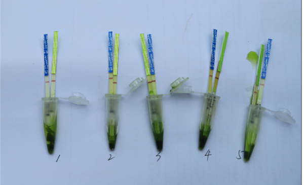 檢查組一行使用Bt-Cry1Ab/Ac、CP40-EPSPS快速檢測試紙,對省水稻所、省旱糧所兩家單位的常規試驗田玉米、水稻品種是否存在轉基因成分,對照種植記錄臺賬進行了隨機抽樣檢測。在試驗基地,檢測人員還進行現場技術示范培訓,大家踴躍參與、認真學習,掌握了轉基因試紙條快速檢測技術。共檢測樣品100個(水稻、玉米各50個),均未呈現陽性。