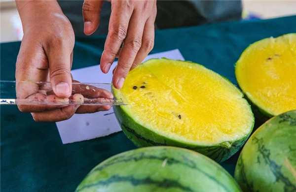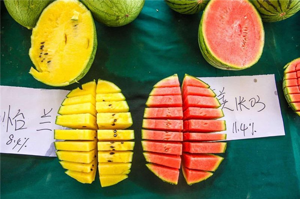 在“擺擂”現場,還有市民反映,像“中玉1號”雖然測出的糖度沒有一旁的“京美2K”高,但是反而口感更佳濃郁芳香。“這是因為糖度測量不僅包含人們能感到甜味的果糖、蔗糖,還有甜度偏淡的葡萄糖,所以糖度高不代表口感好。”馬超提示,市民如果喜歡甜度適中、更加營養的西瓜,可以考慮黃色、彩虹瓤的“京彩”系列、“炫彩”系列、“怡蘭”等品種,這類西瓜相比紅瓤西瓜含有更多葉黃素、β胡蘿卜素,對視力、皮膚等都有良好保健作用。