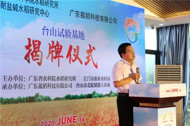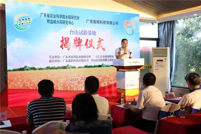 江門市(shi)政協趙(zhao)樹培副主席在會(hui)上(shang)表示(shi),衷(zhong)心祝(zhu)賀臺山耐鹽堿水稻試驗基地的正式掛(gua)牌(pai)成立!基地落戶臺山市(shi)北陡鎮寨門村,是廣東省農科(ke)(ke)院(yuan)對江門市(shi)農業的關心關注和農業科(ke)(ke)研(yan)的大力扶持,也是江門五邑人民的光榮!